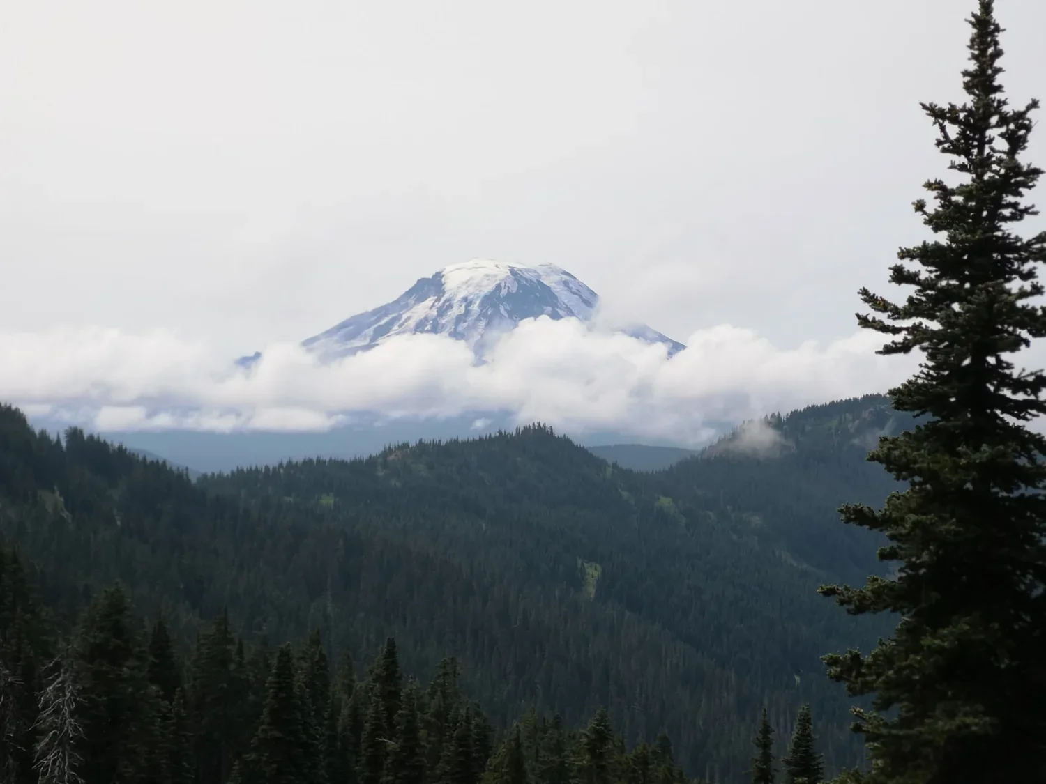 As: nes mes mylime gamta. Pries keleta savaiciu uzkopeme i kalna ir tolumoje pamateme kita milziniska kalna. Tai buvo Rainier kalnas. Kad ji pamatytume is arciau ejome dar 250 kilometru. Kai jau buvome Rainier kalno nacionaliniame parke, vis atsirasdavo trukdziu pamatyti ji visu grazumu: tai rukas, tai debesys dengiantys kalno virsune. Ir taip einant viena ryta misku, pro egliu proskyna pasimate JIS – 4,4 kilometru aukscio aktyvus vulkanas, idealios formos, snieguotas grazuolis. Vienintelis toks didingas tarp kitu mazesniu kalnu, vienintelis skleidziantis tokia ramybe. Stovejau ten ir negalejau atsigrozeti, stovejau ten ir susigraudinau, kad pagaliau ji pamaciau.